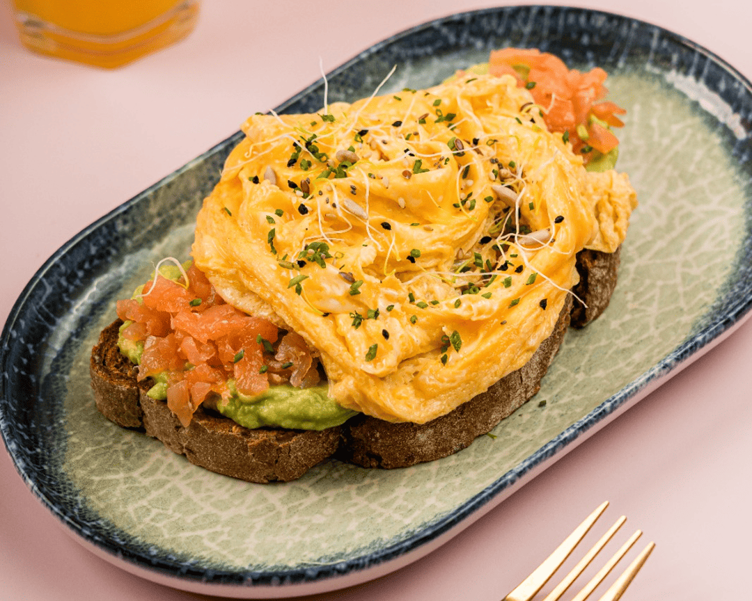 croissant, aguacate, salmon, huevo